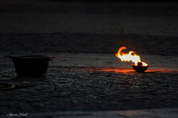 В номере участвуют двое или трое укротителей огня. Несколько смен реквизита (палмы, пои, искровые пои, огненные лины (длинные пои, ощущение, что это огненные мечи, у которых горят лезвия), пиротехнические фонтаны под финал. Сцена на время номера оформляется огненными чашами.